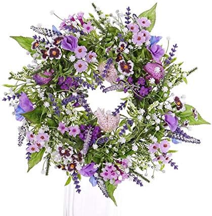 artplants.de Couronne d'été Artificielle Fedora, Lavande, lathyrus, Lilas, Ø30cm - Couronne Artificielle/Couronne de Porte