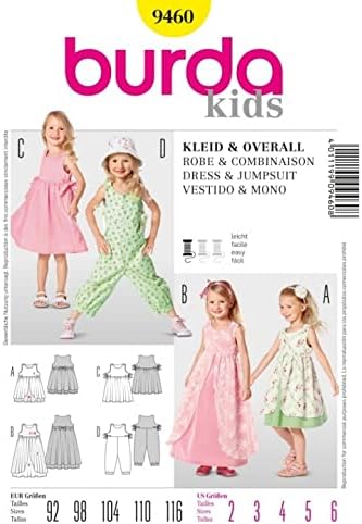 Burda Patron de couture facile pour enfants 9460 Robes et combinaisons