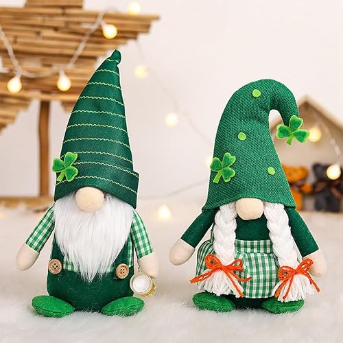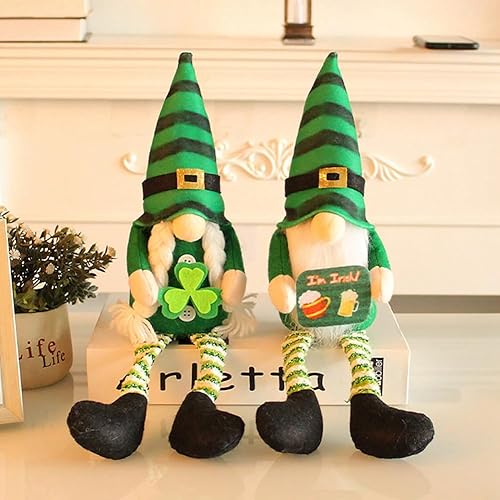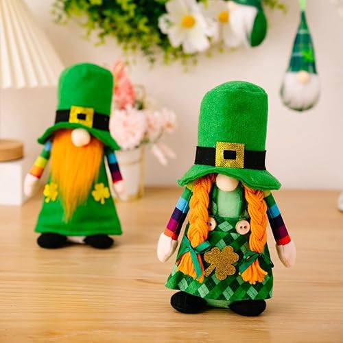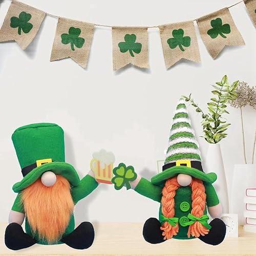 URMAGIC Lot de 2 décorations de nains de la Saint-Patrick - Figurines de gnome trèfle porte-bonheur - Poupée de nain irlandais en peluche - Décoration de fête Saint Patrick (E)
