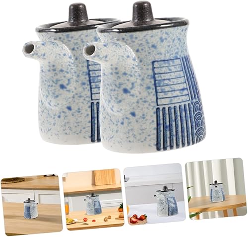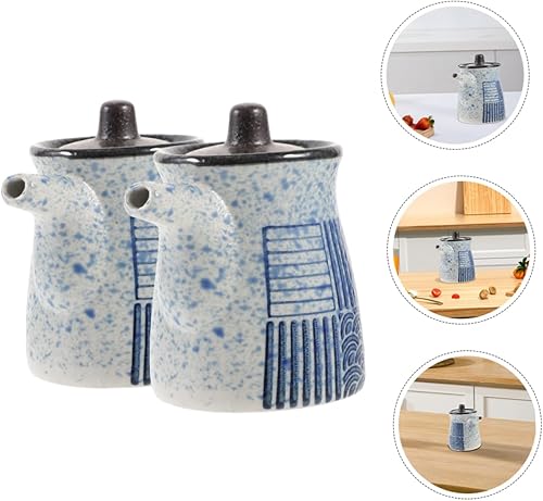 PHENOFICE Ensemble De 2 Pots à Sauce En Céramique Distributeurs De Vinaigre Et De Sauce Soja Ustensiles De Cuisine Pour Un Assaisonnement Facile