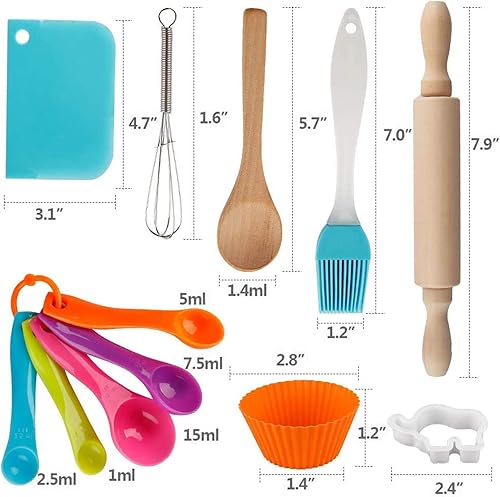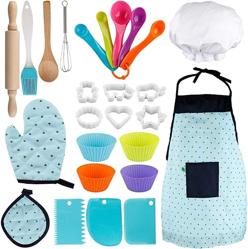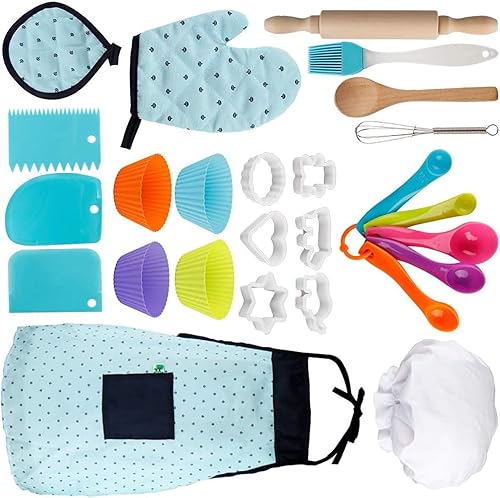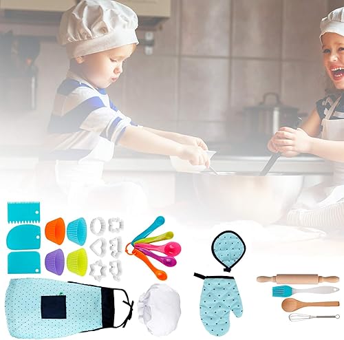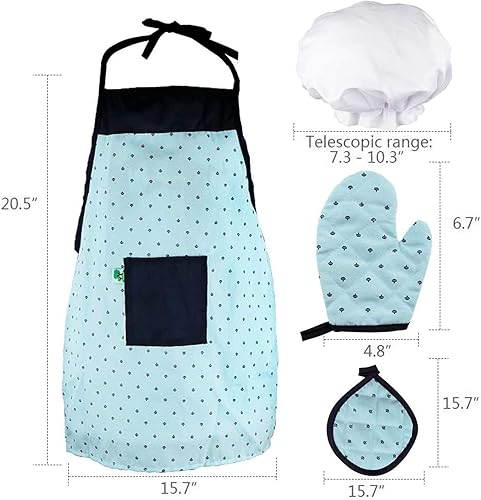 Camidy Ensemble de Jeu de Rôle de Chef Kits de Cuisine Et de Pâtisserie de Base pour Enfants Comprenant Un Tablier de Chapeau de Chef Gant de Four Roulant Ppin Cuillère Mélangeur à Main