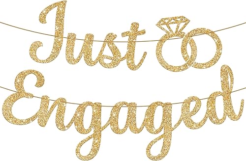 KatchOn, Bannière dorée à paillettes Just Engaged – 3 m, pas de bricolage | Bannière de fiançailles pour décorations de fiançailles | Décorations de fête de fiançailles | Panneau Just Engaged |
