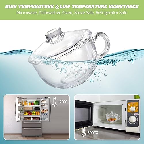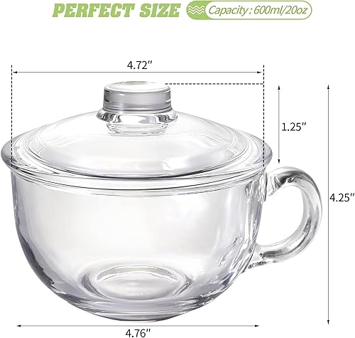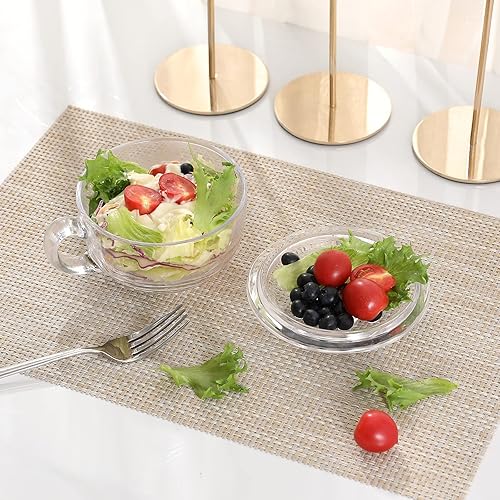 Bol à soupe en verre avec poignée, petits bols transparents avec couvercle en verre Oatmeal Bowls Breakfast Bowls Microwave Safe Glassware Yogourt Bowl pour dessert pâtes riz 550 ml