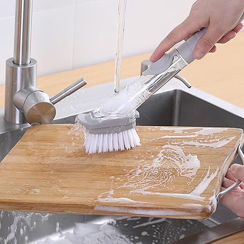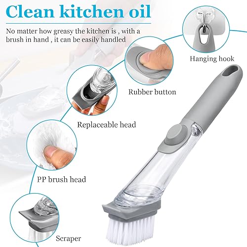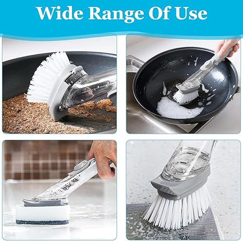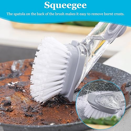 Brosse Vaisselle, Brosse Nettoyage avec Distributeur de Savon et Têtes de Rechange pour Cuisine Nettoyage Casseroles Poêle Évier - Gris