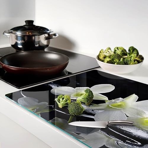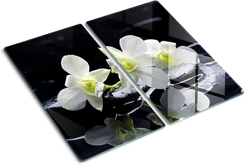 Planche à Découper en Verre Trempé 2x30x52 cm Avec Impression Décoration Résistant à la Chaleur Modernité Symétrique Contact Alimentaire Bords Polis Pieds Antidérapants - Orchidée