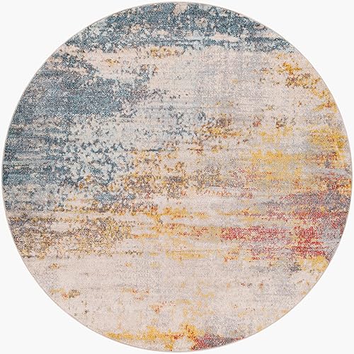 Livabliss Sarasota Tapis Moderne Abstrait - Tapis Salon, Salle à Manger, Chambre Adulte et Ado, Cuisine - Design Marbre Moucheté Multicolore, Poil Ras Doux 160 cm - Bleu