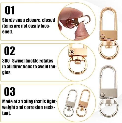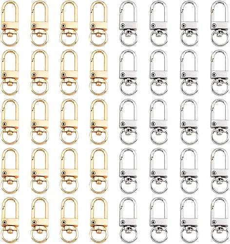 Rebanky 40 Pièces Fermoirs Mousquetons Pivotants Fermoirs Pivotants Mousqueton de Lanière Métal Porte-clés Rotatif Fermoir de Griffe Pivotante Métal pour Sac à Main,Clés,DIY(Or et argent)