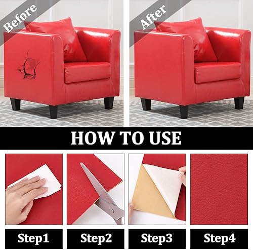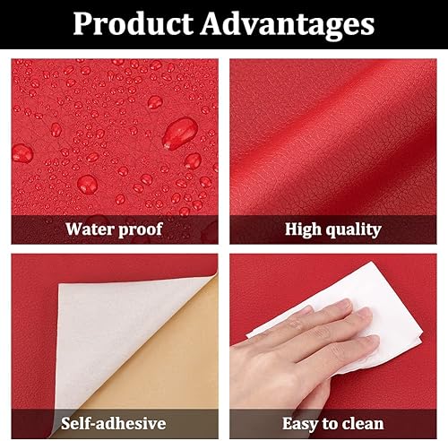 BENECREAT Patch pour réparation en cuir synthétique autocollant de 60 x 30 cm pour meubles de voiture pour canapés (rouge, 0,8 mm d'épaisseur)