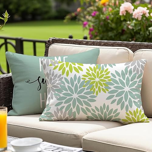 Vorysum Housse de Coussin Décorative Dahlias 30x50 cm Vert - 2 Pièces Double Face Tissu Doux Résistant Canapé, Jardin, Terrasse, Bureau, Décoration Maison, Extérieur/Intérieur