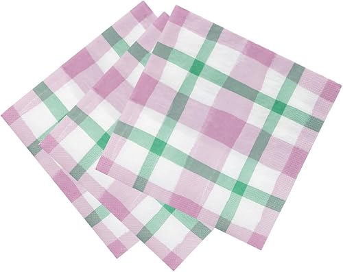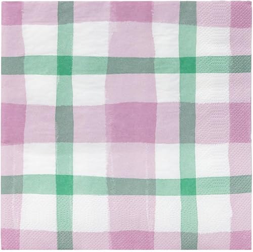 Talking Tables 20 x serviettes de table à carreaux vichy rose et vert pour goûter, pique-nique, fête des mères | Décorations de table de Pâques, serviettes de printemps pour découpage |