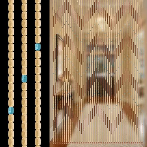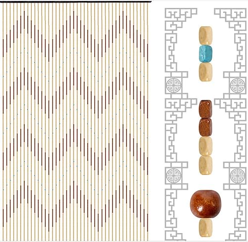 Rideau de porte en perles de bois - Protection contre les insectes - Style rétro - Motif vagues - 90 x 220 cm