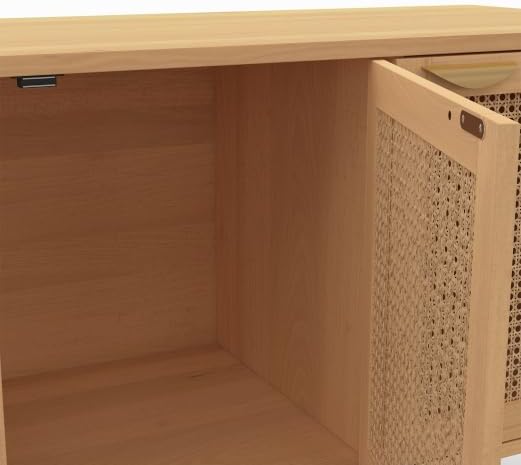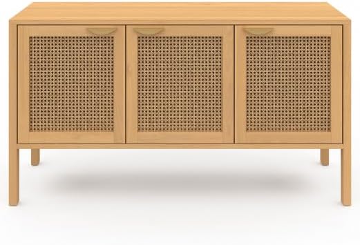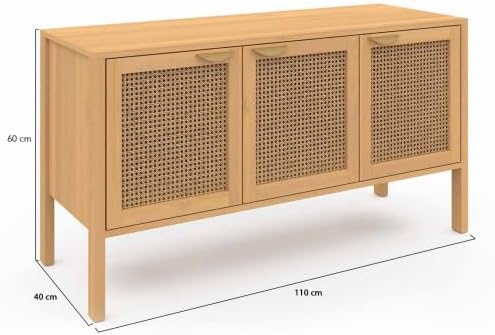 IDMarket - Buffet Bas 110 cm EDHEN 3 Portes Bois et cannage