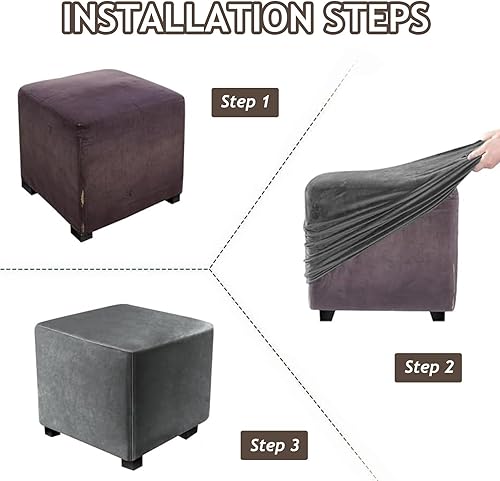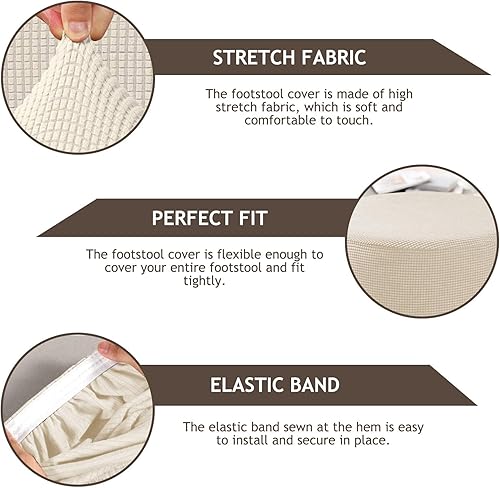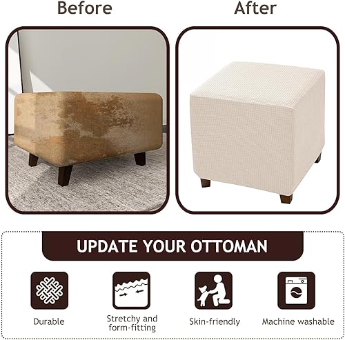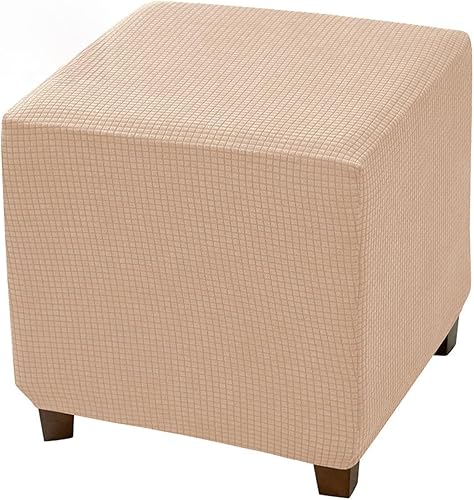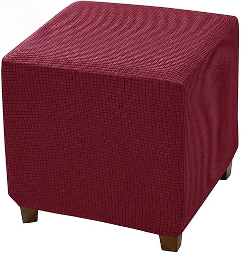 Hearda Housse Ottomane Carré, Gaufre Housse de Protection pour Repose-Pieds rectangulaire, Housses de Pouf Extensible avec Fond Élastique Antidérapante Lavable (Rose,1 pièce)