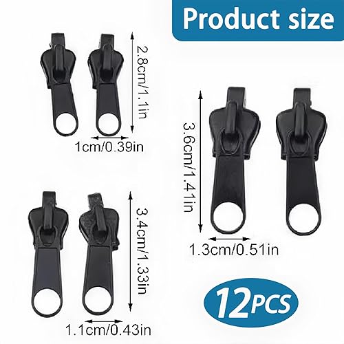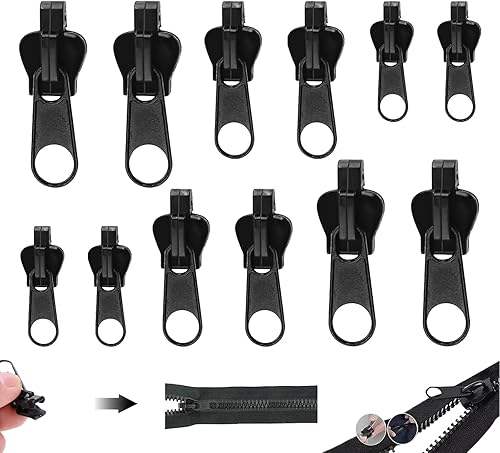 SSKHE 12Pcs Curseurs de Fermeture Éclair Universels - Kit de Réparation Parfait pour Vêtements, Bagages, Tentes et Valises - Détachable (Couleur : Noir)