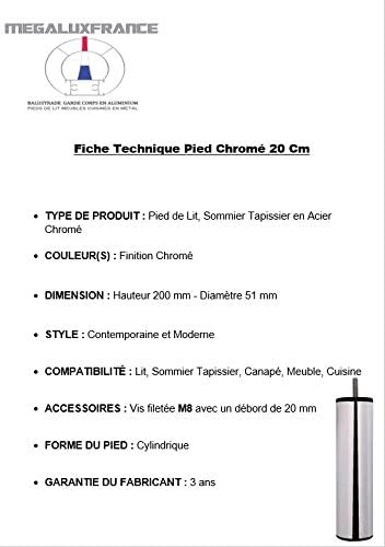 MEGALUXFRANCE 4 Pieds de Lit, Sommier Tapissier en Métal Chromé 20 Cm, Vis Fileté M8
