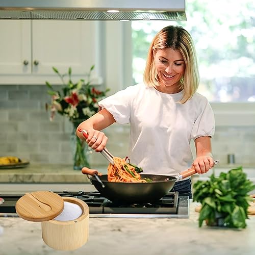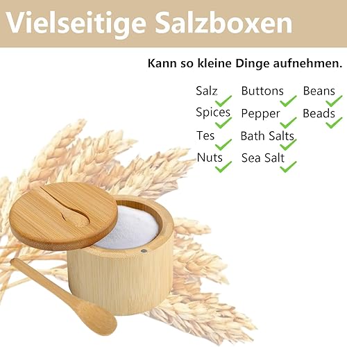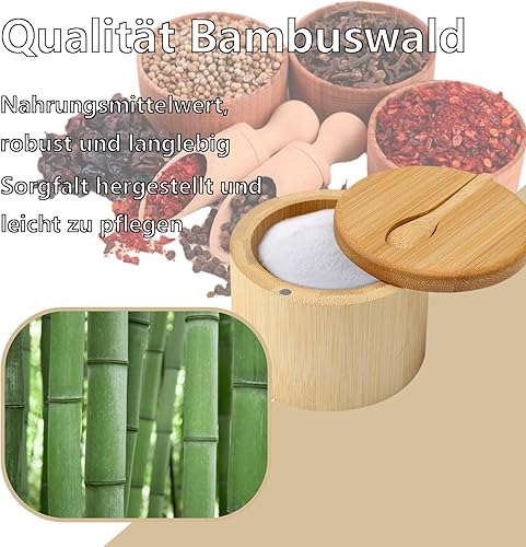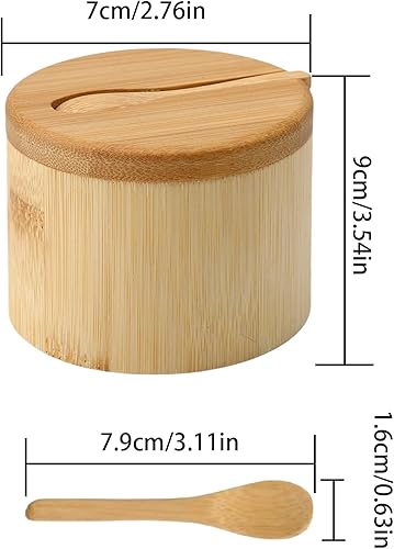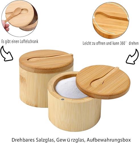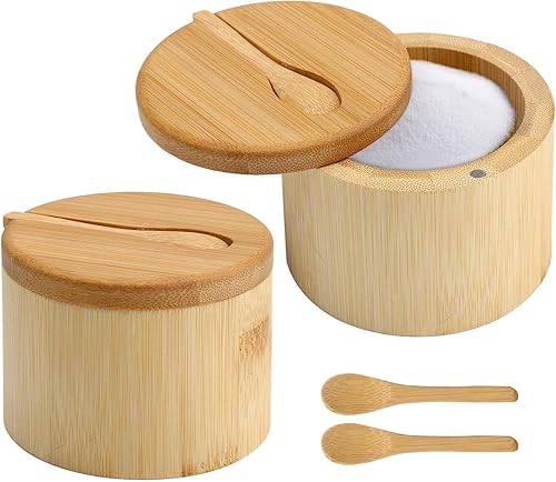 Lot de 2 boîtes à sel rondes en bambou avec couvercle et cuillère, boîte de rangement pour épices, poivre et épices, boîte à sel pour la cuisine