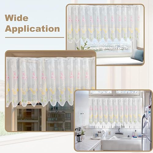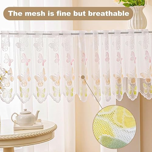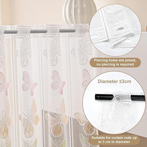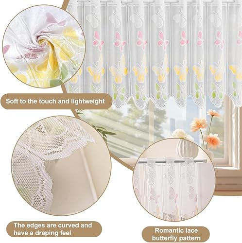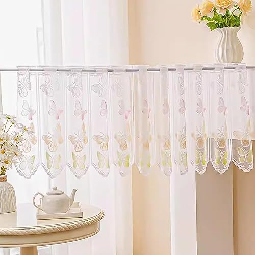 LPAMABA Rideaux de la Cuisine Dentelle Rideau Blanc avec Motif de Papillon Rideau Brise-bise en Jacquard Semi-Transparent Rideau Court avec Passants Rideau Décorant Le Salon Chambre 150x 45cm (L x H)