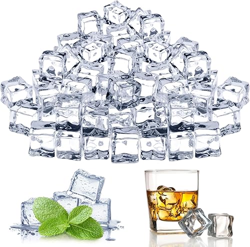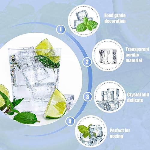 Lot de 50 glaçons artificiels transparents - 20 mm - Réutilisables - Irréguliers - En plastique transparent - Pour la photographie, les accessoires de fête, la décoration de cuisine