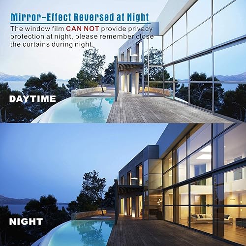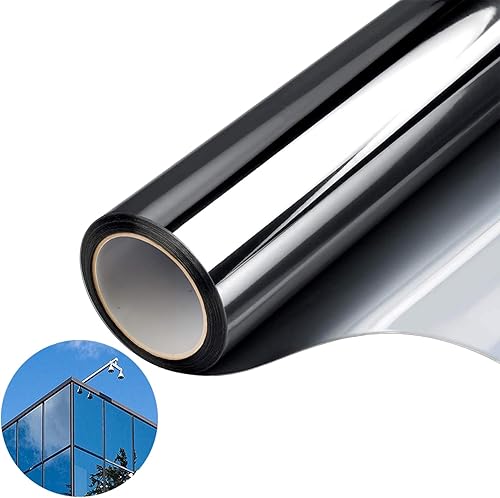 Film en verre réfléchissant statique anti-UV, film miroir de fenêtre réfléchissant unidirectionnel 99 % anti-UV, contrôle de la chaleur, convient pour bureau, maison, argent 30 x 300 cm