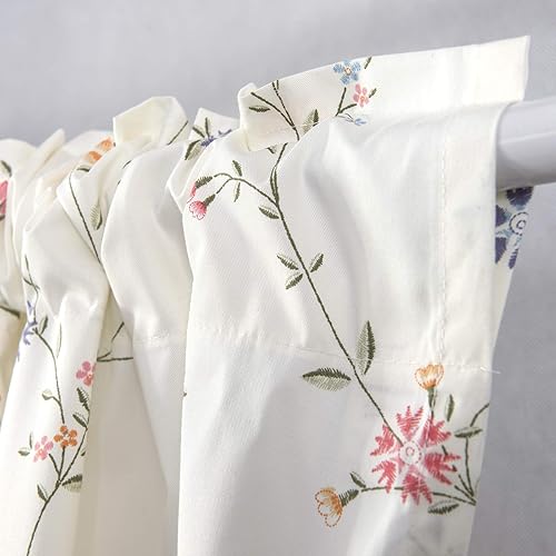 Dreamskull Rideau brise-bise court, moderne, style maison de campagne, cuisine, court, passe-tringle avec motif floral, multicolore, 150 cm de large, petite fenêtre courte