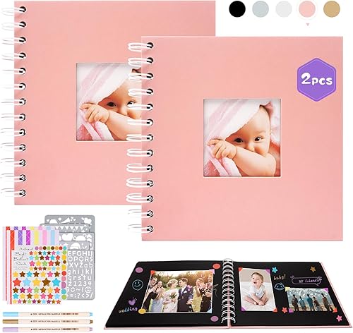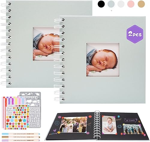 JUNUNDJING Album Photo Scrapbooking(2 PCS), 40 Feuilles/80 Pages DIY Scrapbooking Album, Album 17 X 17 Cm Livre Scrapbooking, Album Photo Traditionnel, Livre Photo, Livre D'or Pour (Bleu)