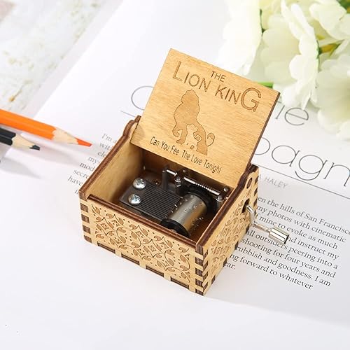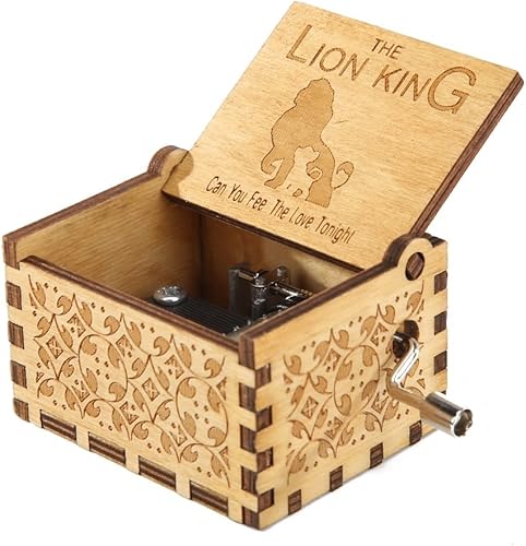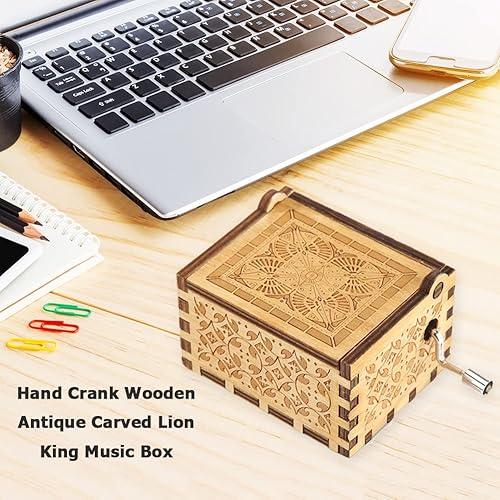 ZOENAE Antique sculpté Lion Roi boîte à Musique manivelle en Bois Cadeau de noël décoration de la Maison for Salon Chambre Ornement (Size : 1pc)