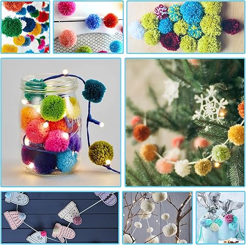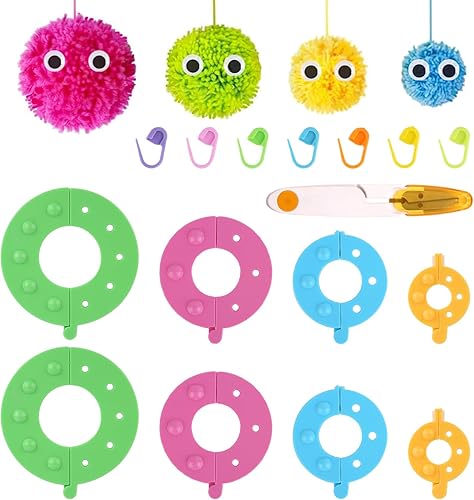 Jwogngls Machine à Pompons - 6 Tailles + 12 Couleurs de Laine, Aiguilles à Tisser, Kit de Fabrication pour Bricolage de Poupées
