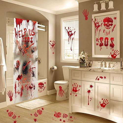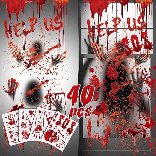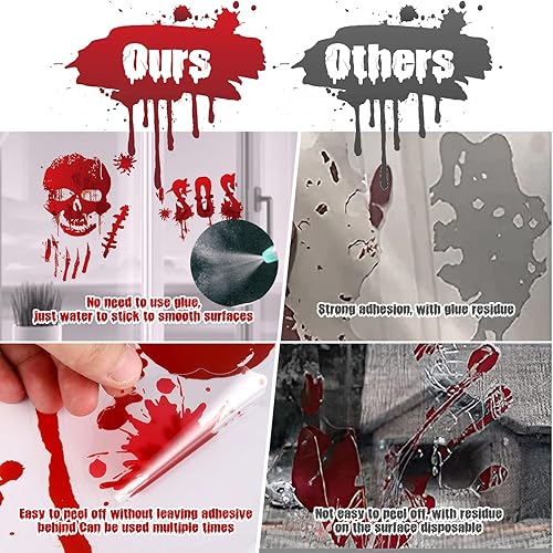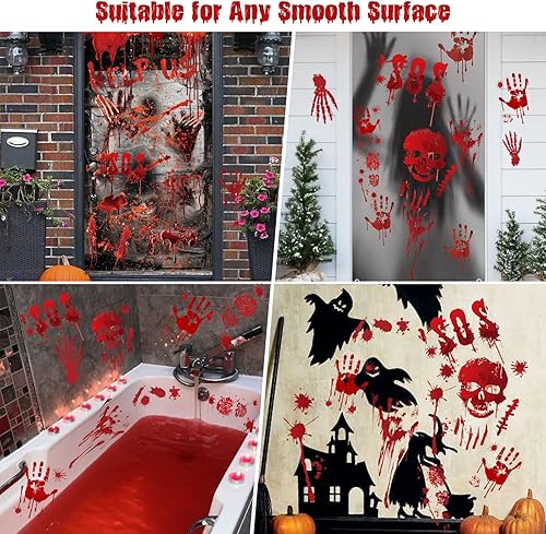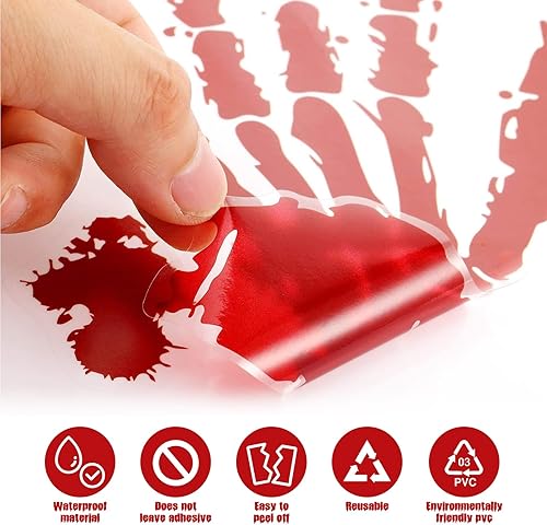 PUWOWYE Halloween Decoration Empreinte Sanglante D'empreinte, Décorations de Halloween Fenêtre Autocollants 5 Feuilles, Autocollants de Fenêtre Spooky pour Décorations de Fête D'halloween