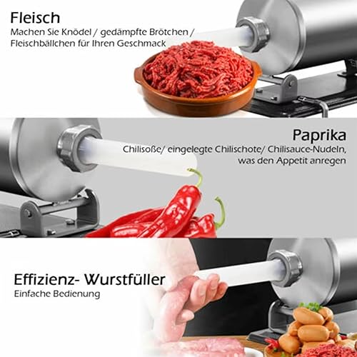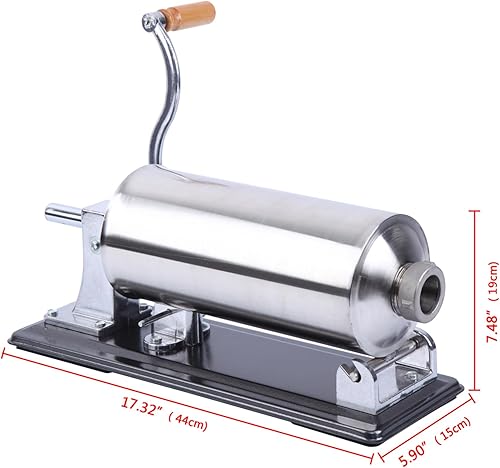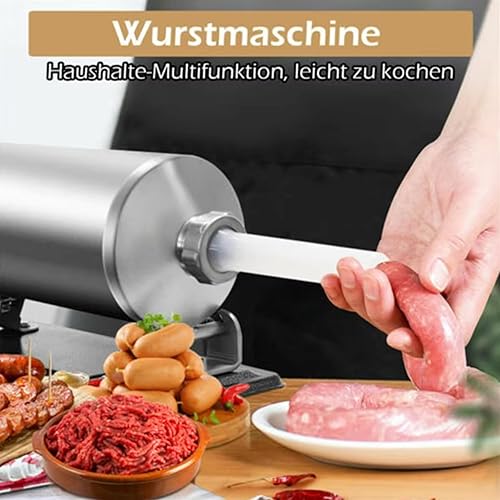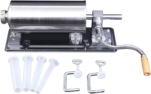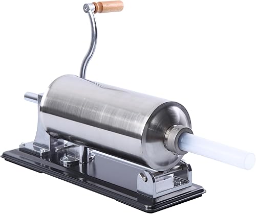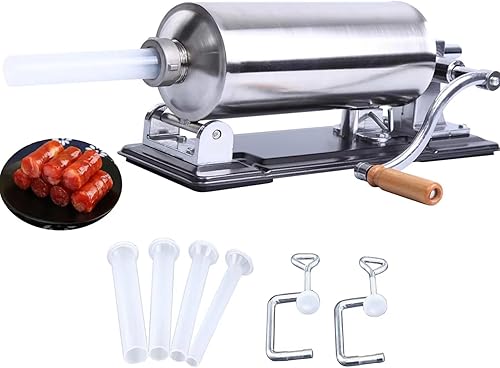 KayEsampra Remplissage de saucisses ,Poussoir à Saucisses, Machine à Saucisse, Machine de cuisine horizontale en acier inoxydable faite maison pour remplir la viande,Capacité de 4.8L,avec 4 Tubes