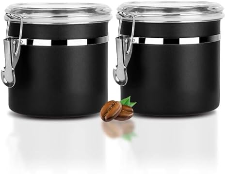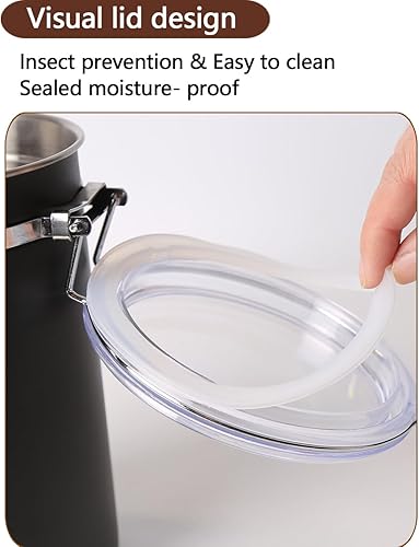 Walktosun Boîte à Café Hermétique, Conservation en Acier Inoxydable pour Grains de Café avec Couvercle Transparent Bocal Récipient Rangement Cuisine Alimentaires Stockage Thé (Lot de 2-1.2L - Noir)