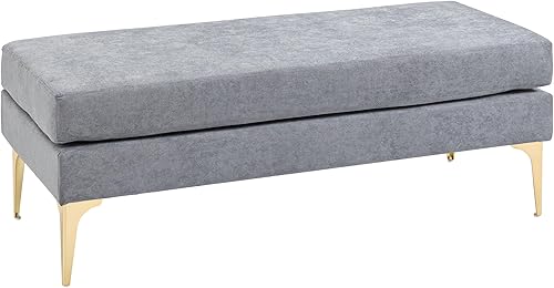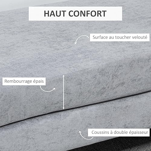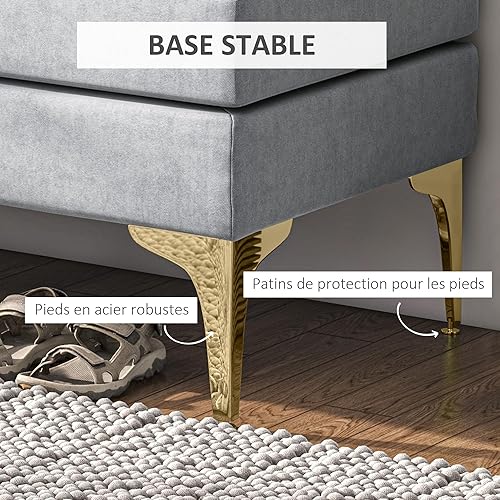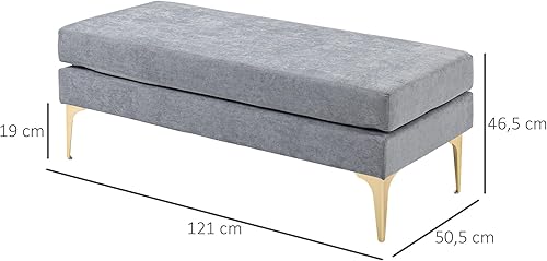 HOMCOM Banc Bout de lit Banquette Banc d'entrée Coussins d'assise Double Pieds en Acier Design Moderne Grande capacité de Charge 120 Kg 121 x 50,5 x 46,5 cm Gris Clair