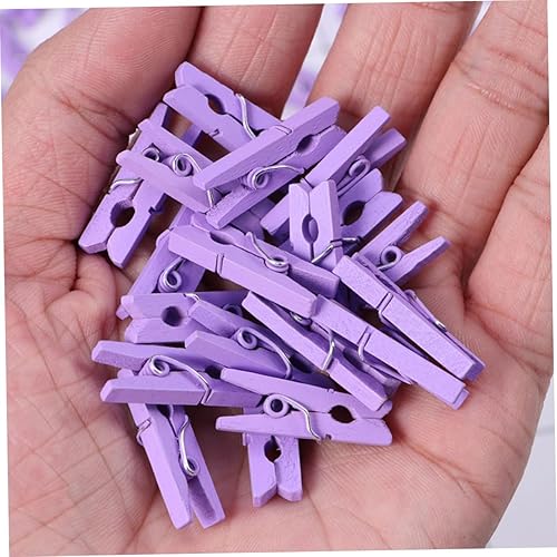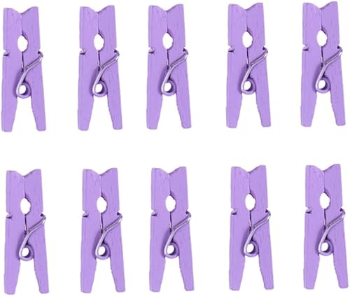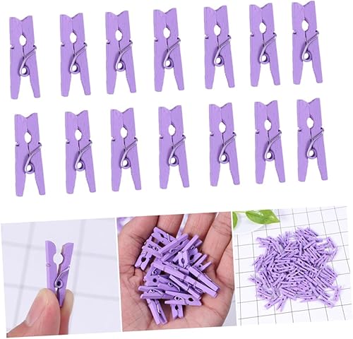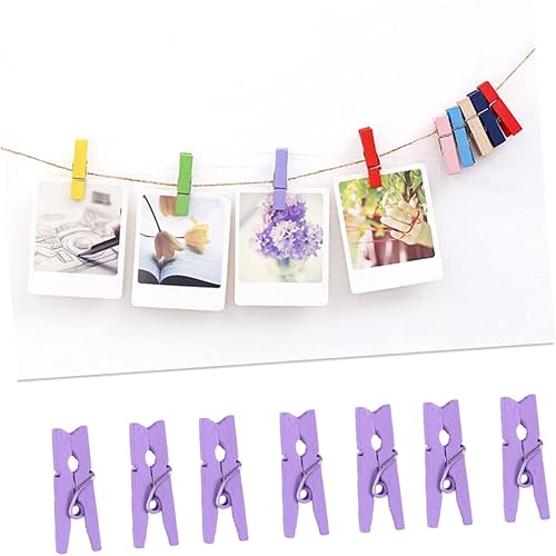 MAGICLULU 200 Pièces Mini-Clip Mini Clips avec Corde Clips Photo Porte-Photos Pinces à Photos Violet,Mauve en Bois