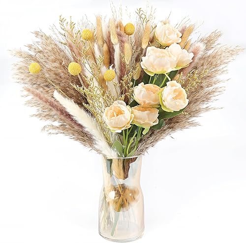Lot de 96 bouquets de fleurs séchées d'herbe de la pampa séchée pour mariage, décoration de table, décoration de ferme, décoration de maison, jardin