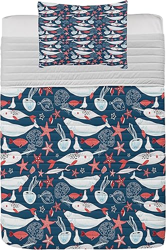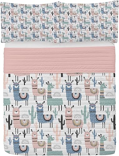 ABAKUHAUS Lama Ensemble de Couvre-lit en Microfibre, Enfants Cartoon Design, Ensemble de Linge de lit Doux avec Couvre-oreillers et Couette, 170 cm x 220 cm, Cadet Bleu