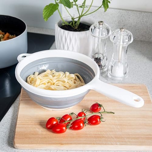 Addis 'Pop & Store Pliable Nourriture Passoire avec poignée, Blanc et Gris