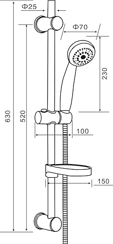 valuebaths Kit de douche rond Barre de douche/flexible de douche et porte-savon en chrome