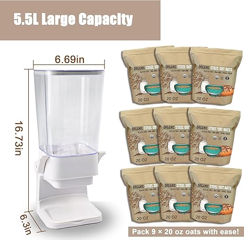 Sinceroduct Conteneur à céréales, 5,5 l, grande capacité, facile à contrôler, récipient de stockage des aliments secs et aérés pour grains, riz, noix, haricots, bonbons, blanc