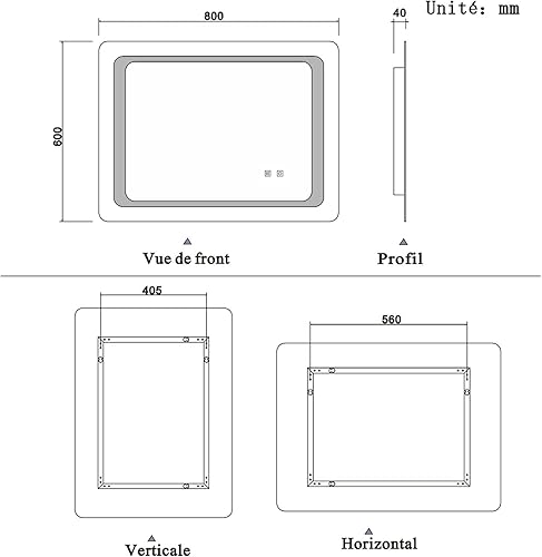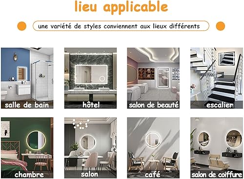 HAPAOSO Miroir de Salle de Bain 120x70cm avec Miroir Mural Anti-buée rectangulaire Lumineux + Interrupteur Tactile Miroir LED Blanc Froid 6000k