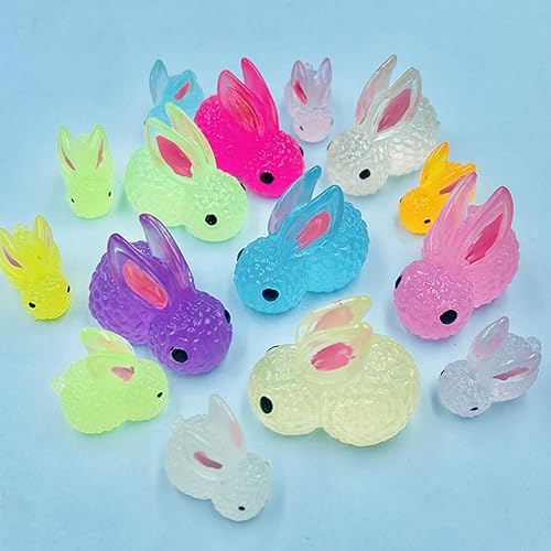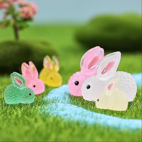 XineYuor Figurines de lapin de Pâques, 28 mini figurines de lapin, lapins miniatures qui brillent dans le noir, décoration de jardin, figurines de décoration de jardin lumineuses, lapins pour jardin f