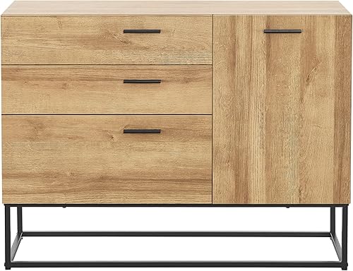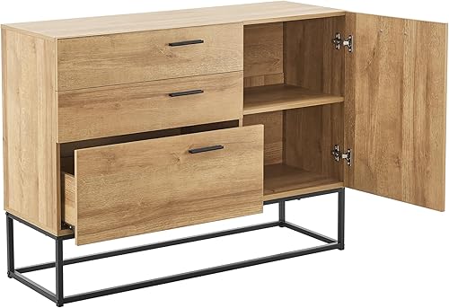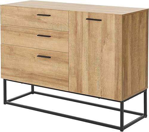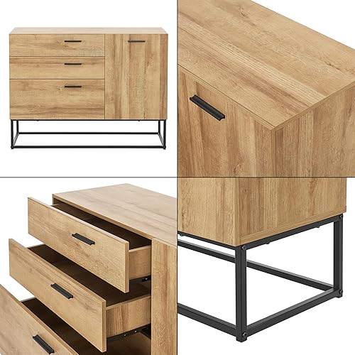 [en.casa] Buffet Style Industriel Commode pour Salon Entrée Chambre Meuble de Rangement avec Tiroirs et Étagère Fermée à Porte Métal Panneau de Particules 75 x 100 x 35 cm Noir Effet Chêne