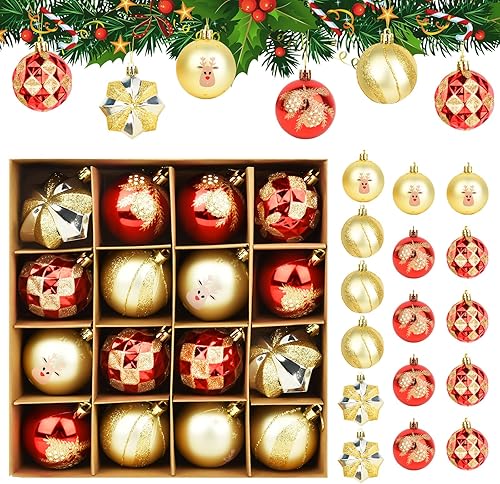 Boule de Noel, 16 Pièce Decoration Noel Boules de Sapin de Noël À Suspendre 6cm Boule de Noel Rouge Decoration Noel Extérieur ou Intérieure pour Noël Mariage Fête Danniversaire Decoration Noel Sapin