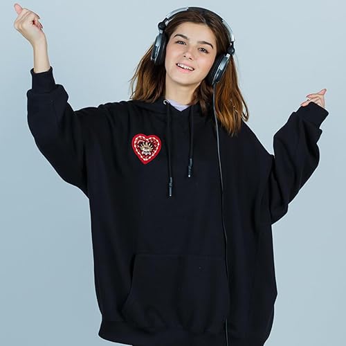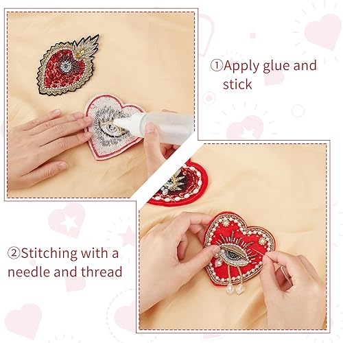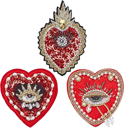 NICENEEDED 3 pièce Patchs Perlés en Forme de Cœur Contre Le Mauvais Œil Patch Appliqué à Paillettes Rouges Coudre des Patchs en Cristal pour Le Bricolage
