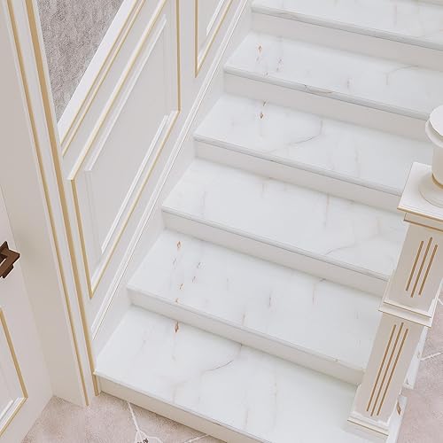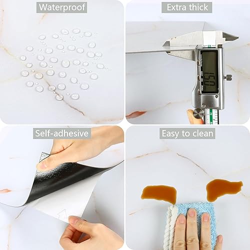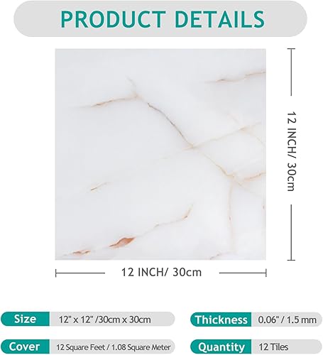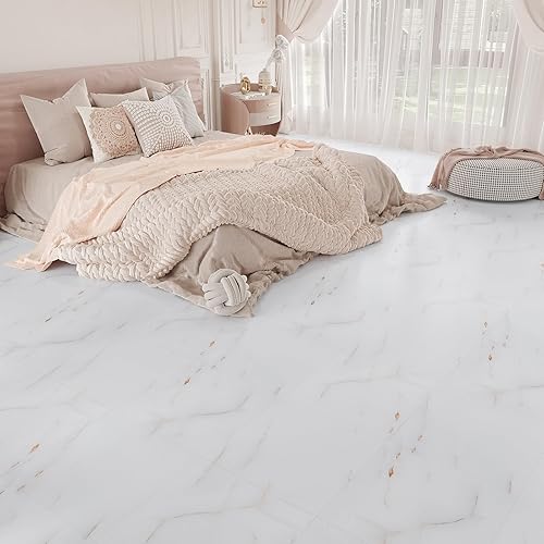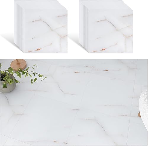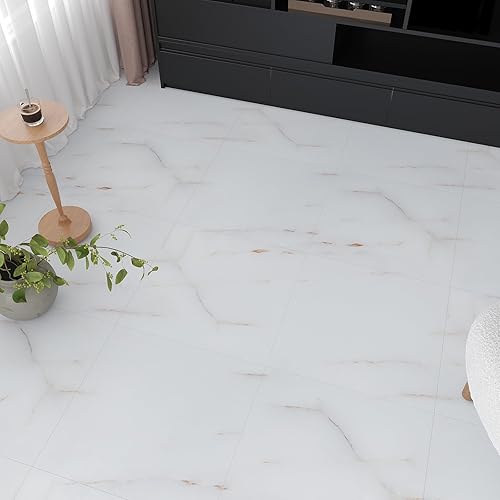 VEELIKE Carrelage Adhesif Sol Marbre Blanc Doré 24 Pièces Dalle PVC Adhesive Sol Garage Carrelage Adhesif Mural Cuisine Marbre Blanc Or Stickers Carrelage Salle de Bain Salon Étanche 30 cm x 30 cm