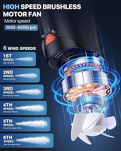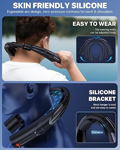 Svintora Ventilateur de cou portable rechargeable, 6 vitesses de vent réglables, design de refroidissement du cou à 360°, un incontournable pour l'été [plein air/randonnée/camping/voyage]