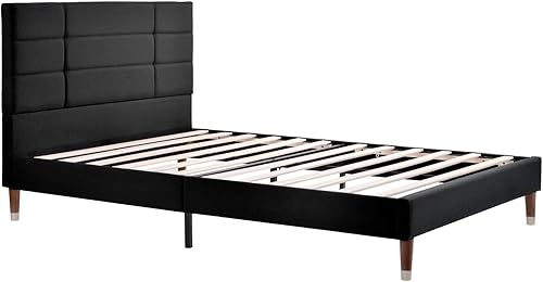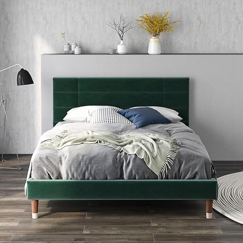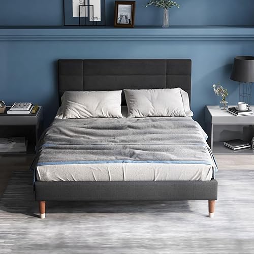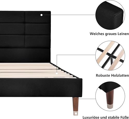 Sweiko Lit rembourré 140x200 cm, lit Double avec sommier à Lattes, Cadre de lit rembourré avec tête de lit en Tissu Velours, pour Adultes et Adolescents (Matelas Non Inclus) (Grey)