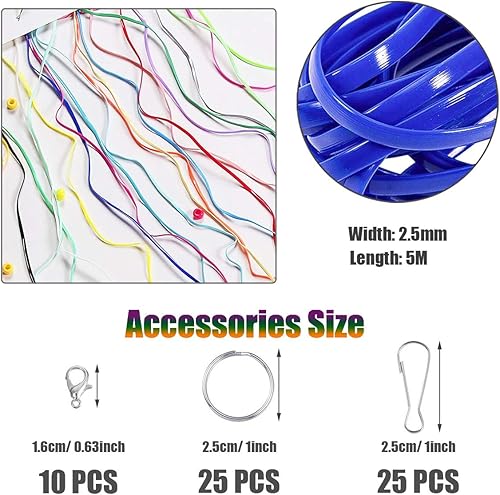 Allazone 20 Couleur Cordes Scoubidou, Cordon de Laçage en Plastique avec 60 PCS Crochets Mousquetons, Agrafes Porte-Clés pour La Fabrication De Bijoux DIY Craft Gimp String, 100 M