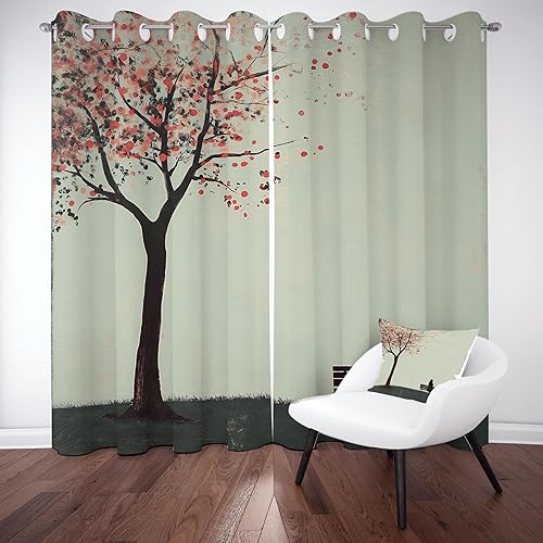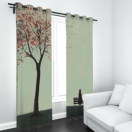 Sobhdga Rideau Paysage Naturel Arbre Fille Rideau Occultant Thermique Isolant Anti Froid, Rideaux Art Déco Draperies Interieurs a Oeillets pour Chambre, 140l X 240h, Lot de 2