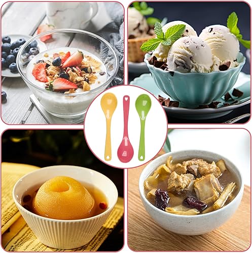HAYGEM 24 Pièces Petite Cuillère à Dessert en PP 11.5 cm, Cuillere Plastique Jetable Polyvalente, Petites Cuillères avec Trou de Suspension pour Cœur, pour les Soupes Chaudes, Yaourts, Desserts