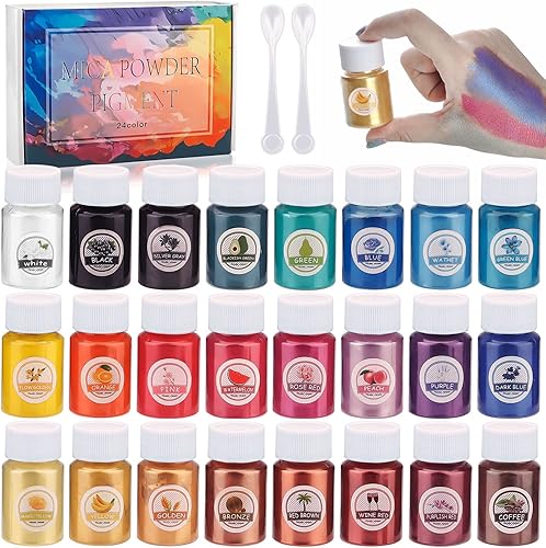 VIPNAJI Poudre de mica - Pigment résine époxy 24 couleurs × 15g,colorant de savon, Métallique Naturel pour la fabrication de bijoux, Bougie,Vernis à Ongles,Bombe de Bain etc