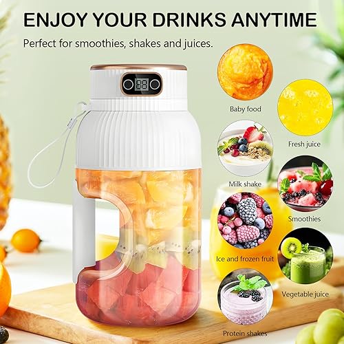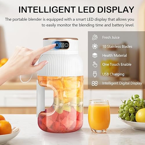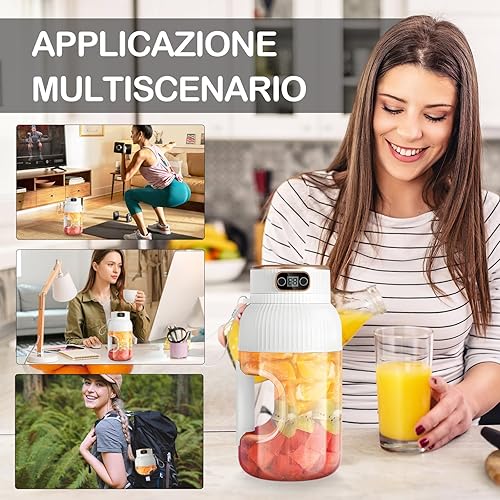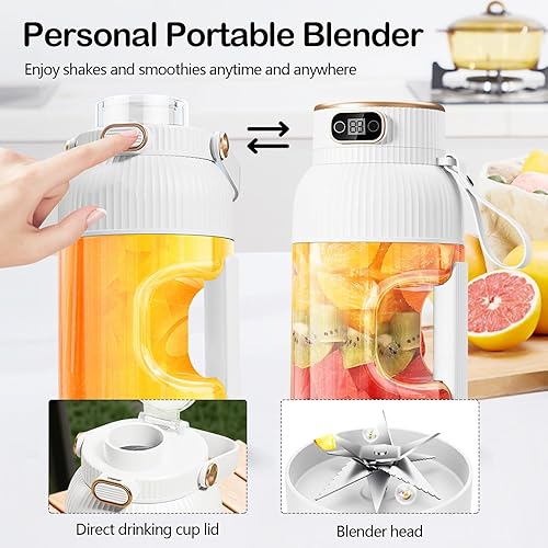 Blender Smoothie, Mixeur Portable de 1200ml avec Affichage Led Intelligent, USB Rechargeable Mini Blenders avec 10 Lames, Mini Mixeur avec Couvercle de Voyage pour Cuisine, Salle de Sport, Bureau